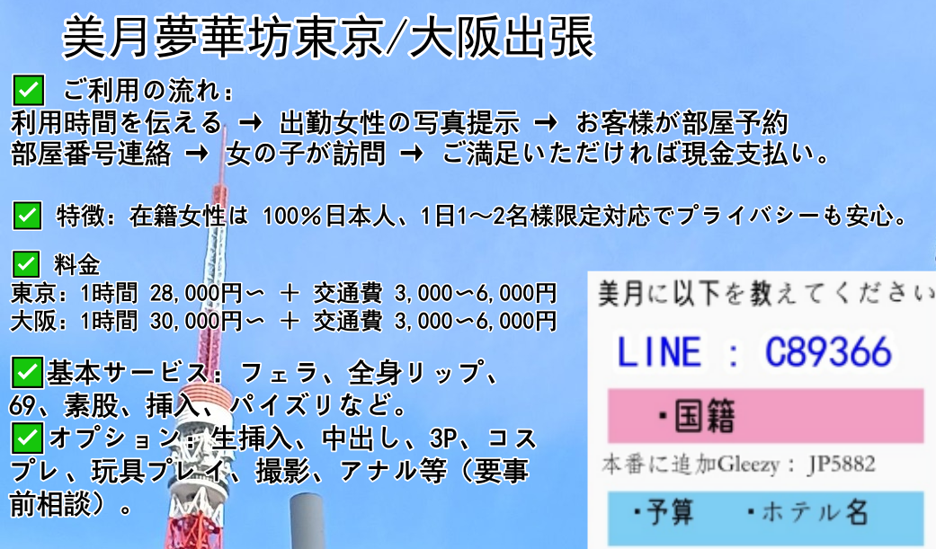 美月夢華坊|東京出張&大阪出張LINE: C89366 | TG: @An98363